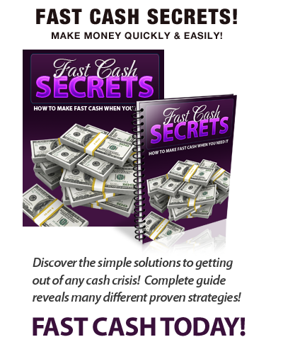 Our strategies include "Instant Cash Techniques" and "Overnight Money Strategies" that are designed to help you out of your cash crisis!